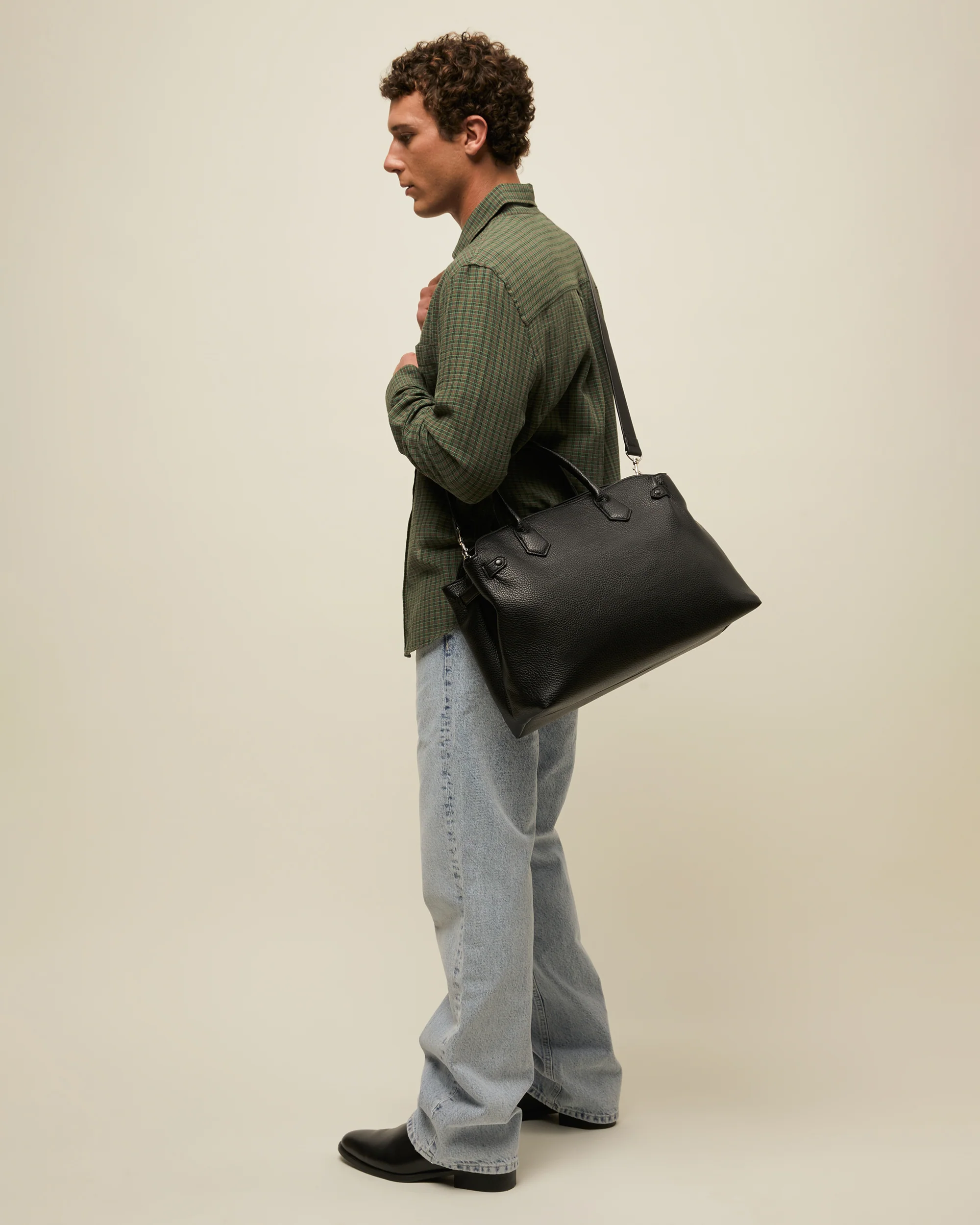 Las asas cortas permiten llevarlo cómodamente en la mano, mientras que la bandolera desmontable y ajustable con hebilla metálica te ofrece una alternativa práctica para llevarlo al hombro o cruzado cuando prefieras mayor libertad de movimiento.