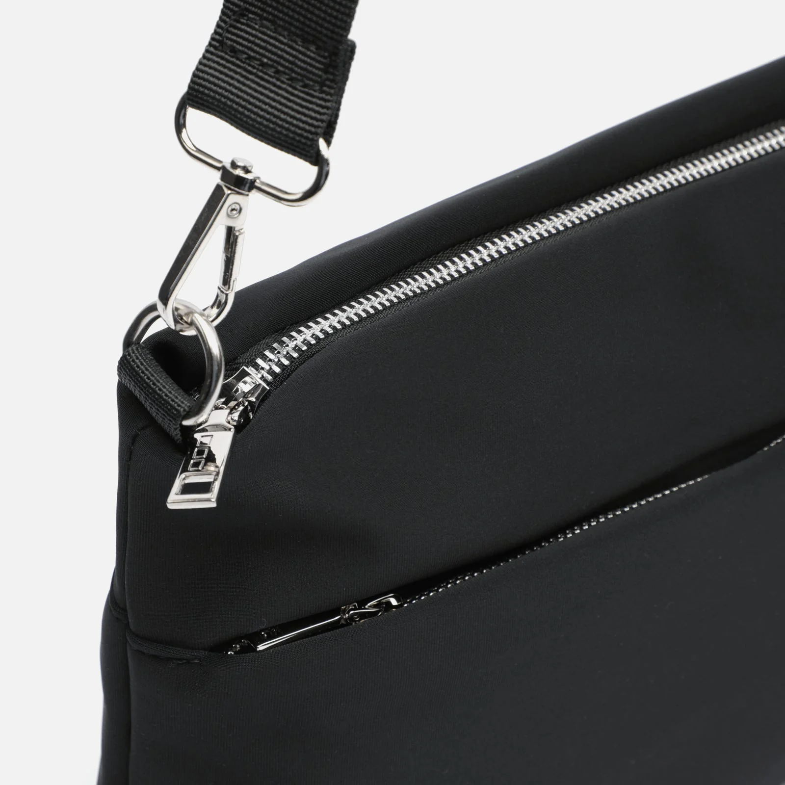 El bolso bandolera Nebula de Misako captura la esencia de la elegancia urbana con una silueta minimalista y funcional. Confeccionado en un resistente tejido con textura tipo neopreno, garantiza una durabilidad excepcional sin renunciar a la comodidad. Su diseño ultraligero, con correa ajustable y desmontable, ofrece comodidad y un estilo relajado que se adapta con facilidad a todos tus looks. En el exterior cuenta con dos prácticos bolsillos: uno frontal con cremallera metálica visible y otro trasero con cierre de broche, perfectos para tener tus imprescindibles siempre a mano. El compartimento principal incluye un bolsillo interior con cremallera, ideal para proteger objetos pequeños de valor que necesitas encontrar rápidamente.