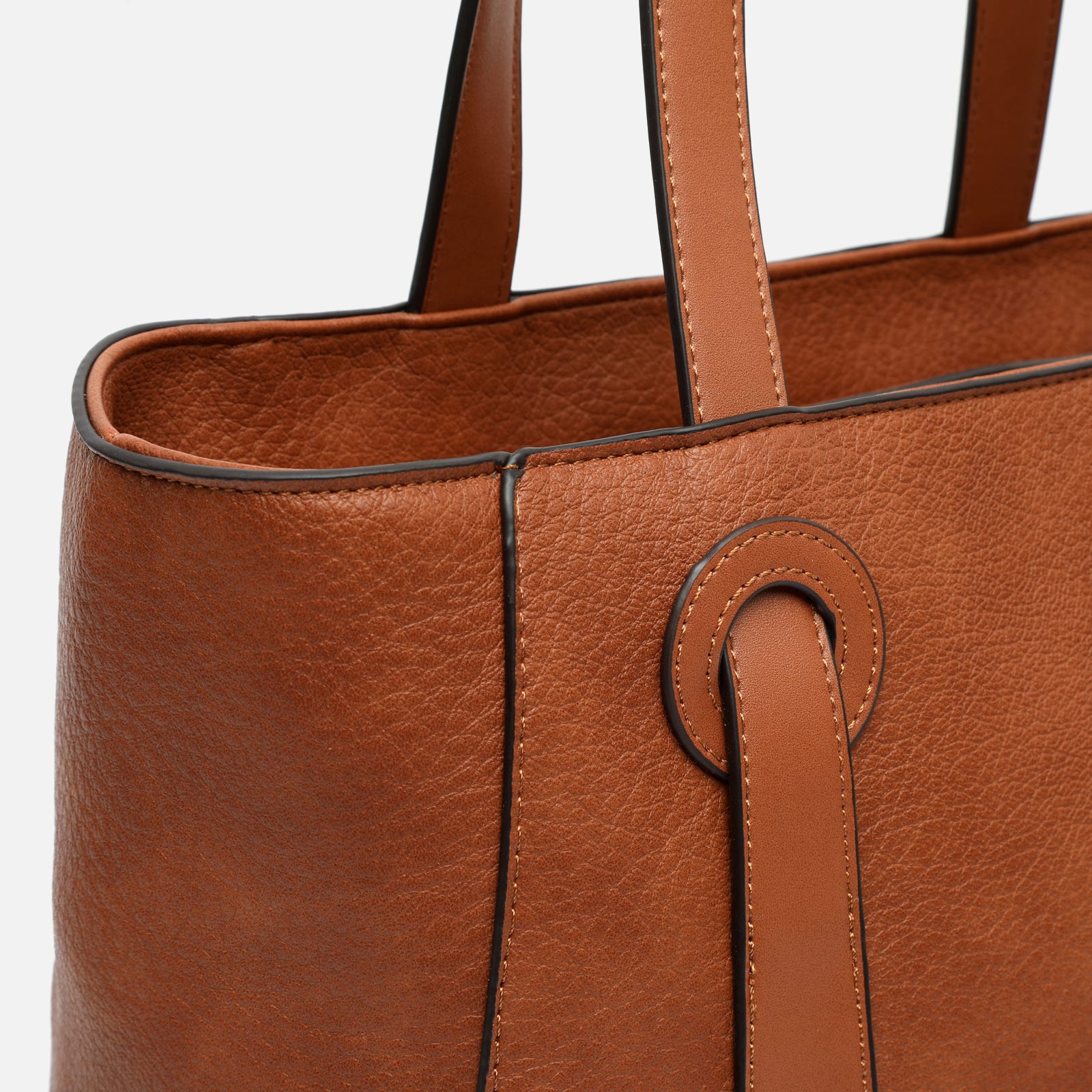 Está fabricado en efecto piel de primera calidad y cuenta con un amplio compartimento con cierre de cremallera para llevar todo contigo, además de un práctico bolsillo interior para que hasta tus pertenencias más pequeñas estén siempre seguras y organizadas. Sus asas largas lo hacen cómodo de llevar al hombro, adaptándose con facilidad a tu ritmo cotidiano.