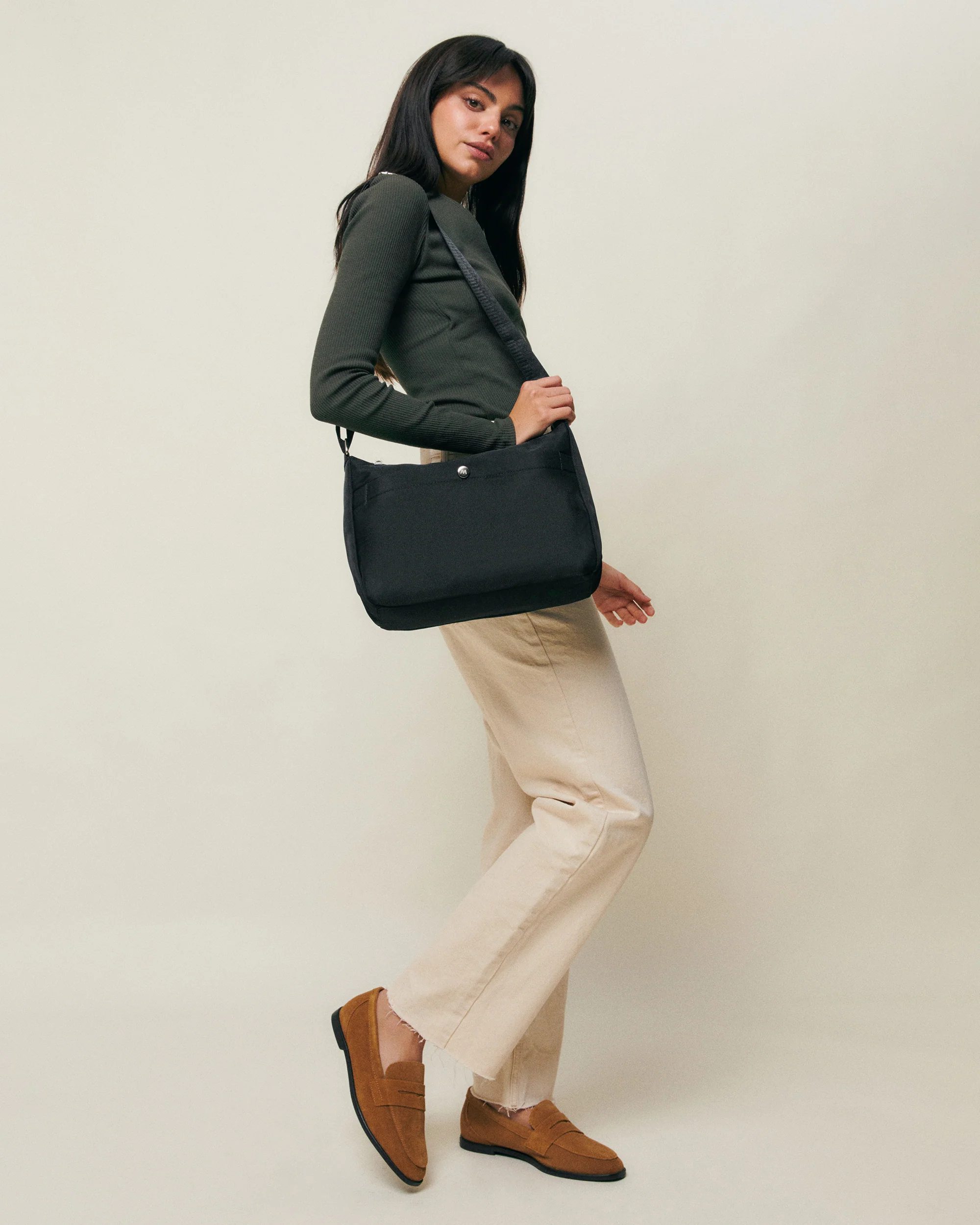 El bolso bandolera Ursulas de Misako es un imprescindible para todos tus planes relajados y al aire libre. Confeccionado en nylon balístico de primera calidad, repele la lluvia, el polvo y los roces típicos del uso diario. Su diseño de estilo minimalista se realza con detalles como el botón logo metálico “M” y las cremalleras plateadas de deslizamiento suave que además le aportan un extra de seguridad. La correa ajustable, en cinta con detalle en efecto piel, rompe la monocromía y añade un sutil contraste al diseño. En su interior, incluye un bolsillo con cierre de cremallera para mantener tus artículos más valiosos siempre organizados y a mano.